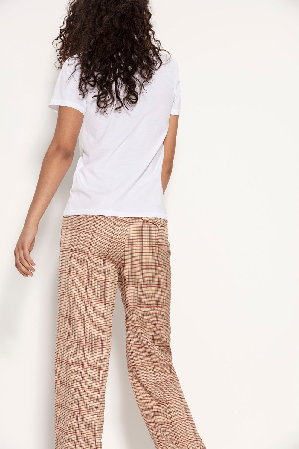 Straight-cut t-shirt made of pure cotton with a ribbed round neck. A statement print is integrated in the multicolored front print.