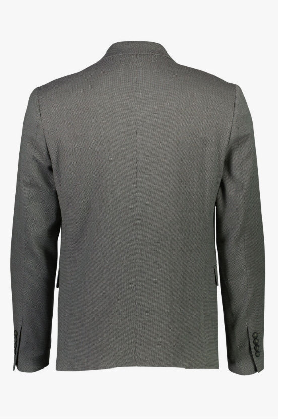 The blazer closes with two buttons and has two pockets in front and a breast pocket, as well as three jetted inside pockets. Elegant detailing such as decorative buttons by the sleeve.