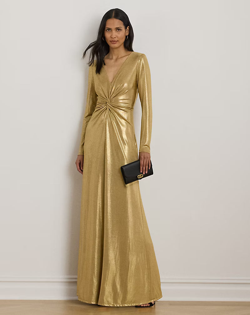 Lauren Ralph Lauren Metallic Jersey Twist-Front Gown | Relic Gold