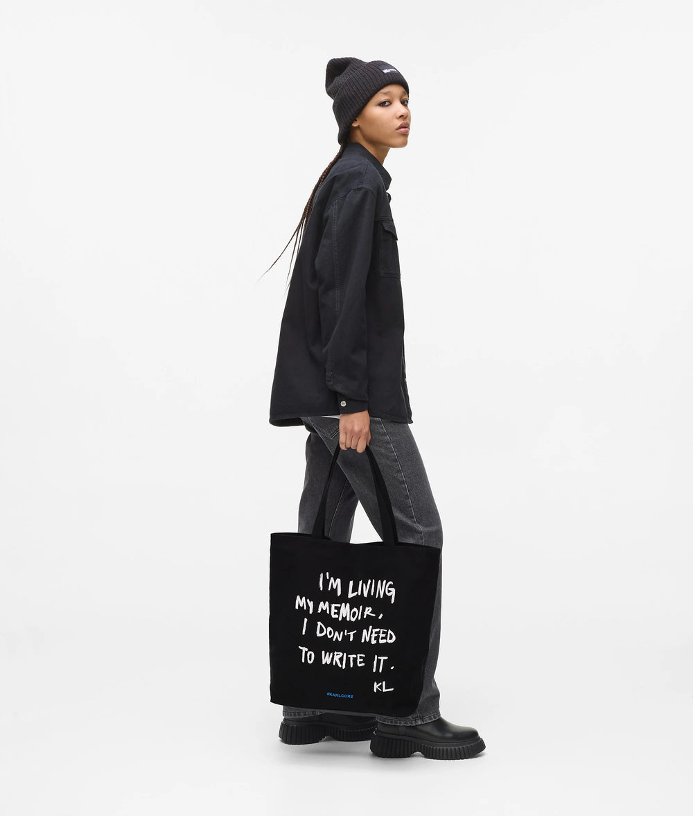 Bold artwork featuring an inspiring quote from Karl Lagerfeld elevates this spacious cotton shopper. A magnetic closure and inner zipped pocket keep essentials safe and organized, while the twin handles offer easy carrying.