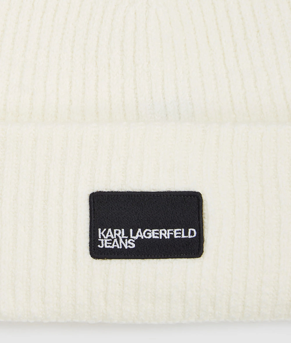 Classic design meets contemporary edge in this folded brim beanie, crafted in a warm, chunky knit. The KARL LAGERFELD JEANS logo patch adds a bold, street-ready feel.