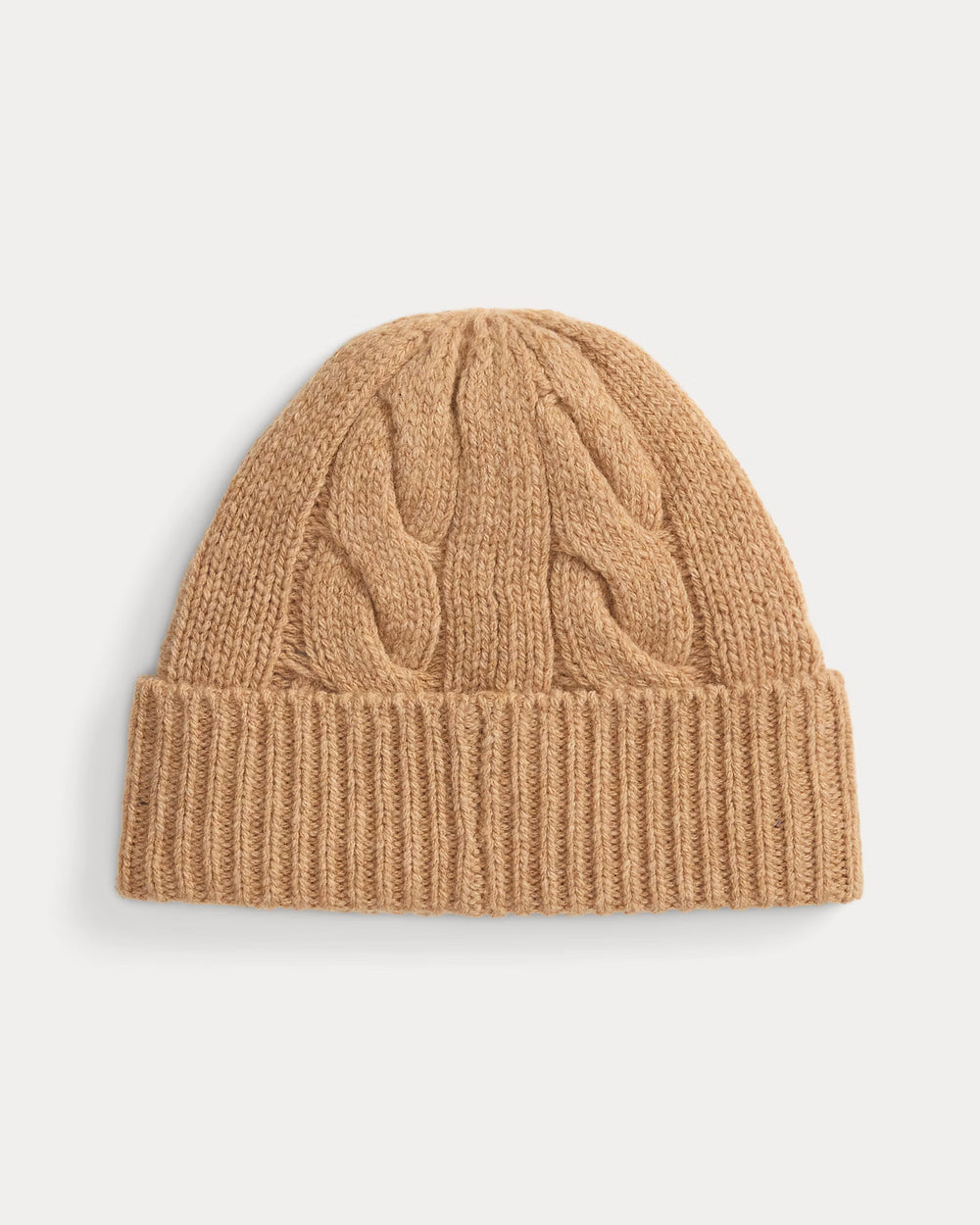 Cable-knit with a blend of yarns that includes wool, this beanie is embroidered with the Polo Bear and our signature logo at its fold-over brim.