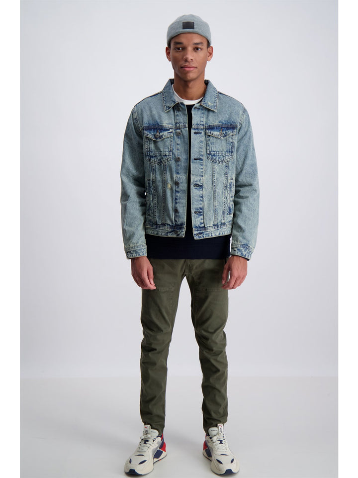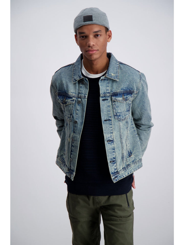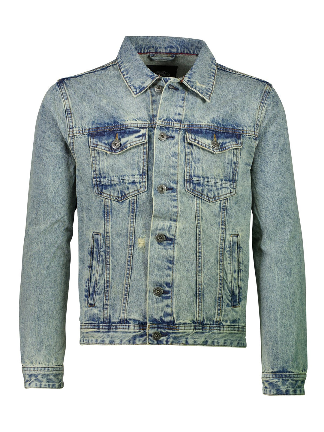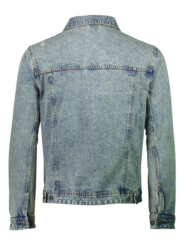 Shine Original denim jacket in single design. There are two breast pockets with buttons and two open side pockets. The jacket is made of 100% cotton and bleached to get the cool bright color.