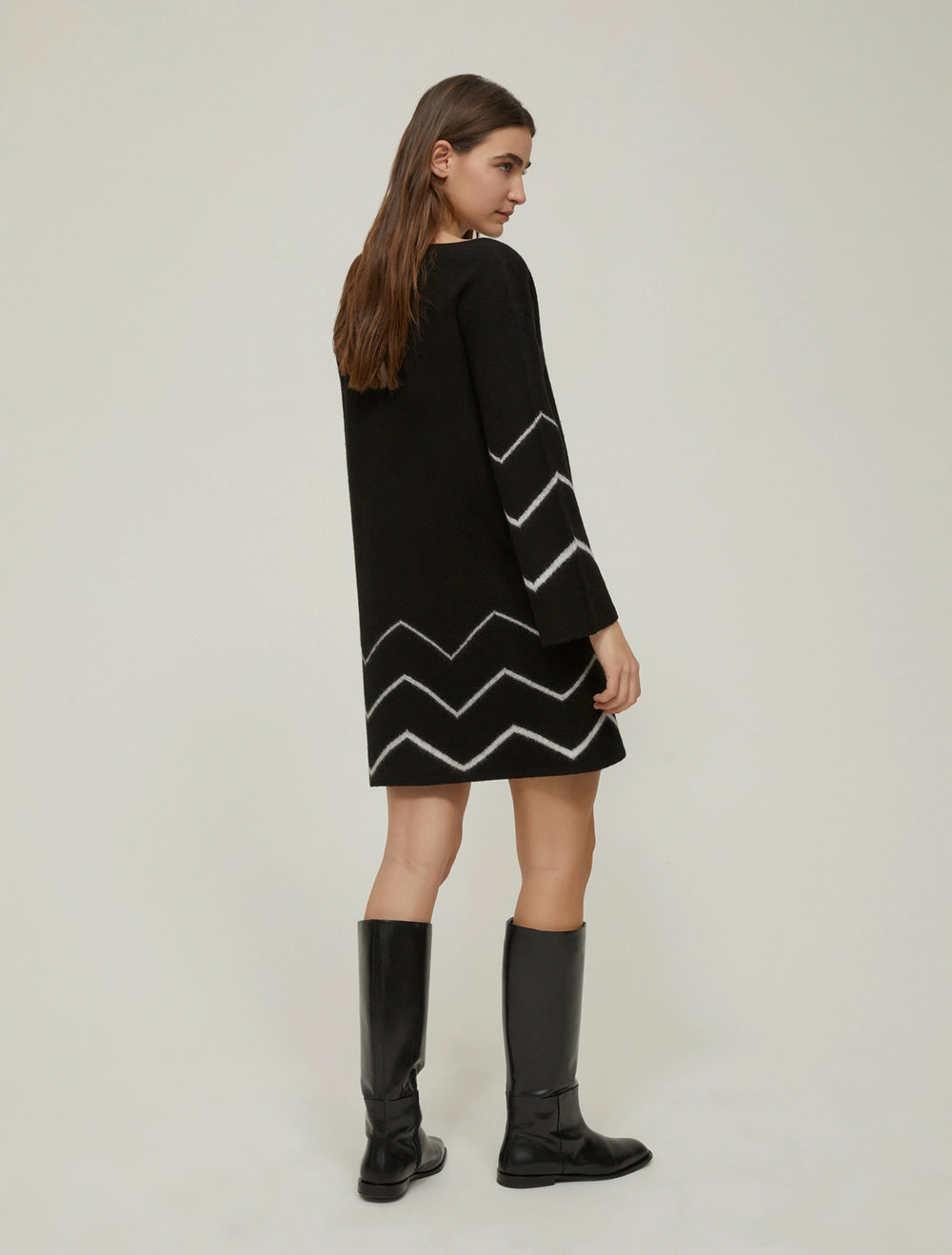 Never Needy Striped Split Crewneck Casual Dress | White/Black
