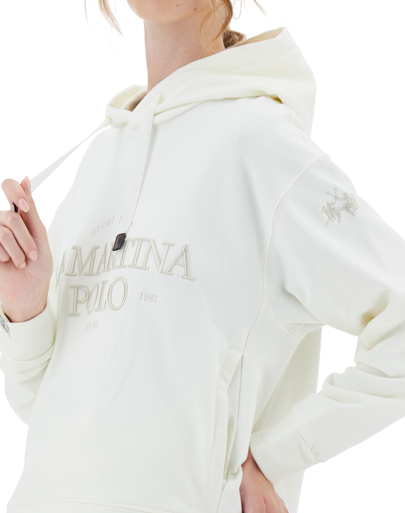 La Martina Women’s Hoodie in French Terry Royal Polo | White