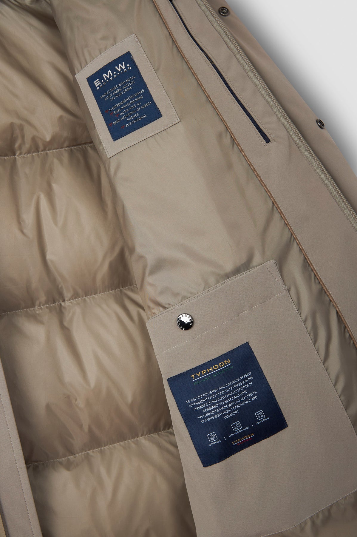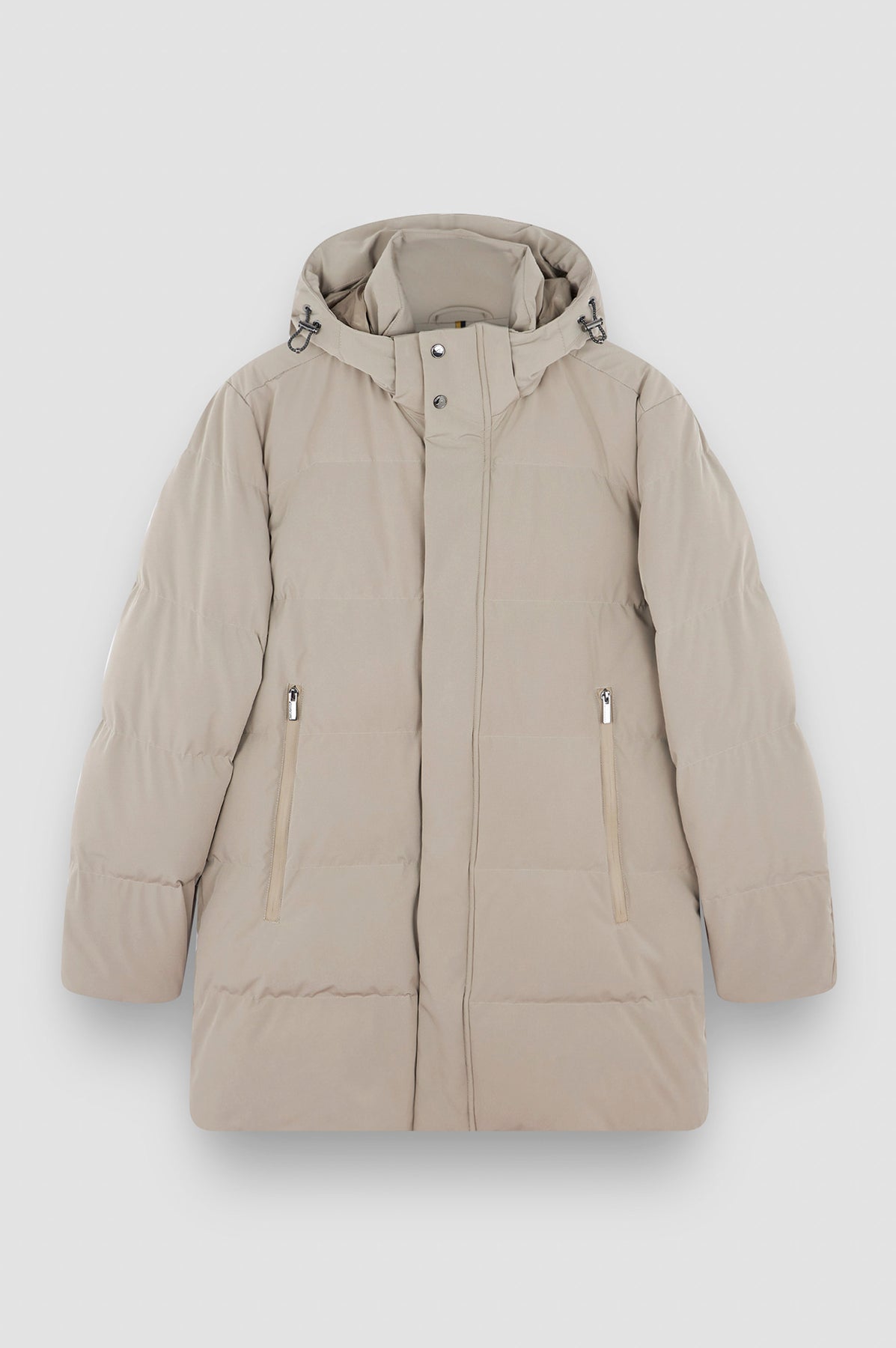 The detachable, adjustable hood with a high stand-up collar and two practical pockets fastened with sturdy zippers are testaments to both functionality and aesthetics. Here, the elegance of form goes hand in hand with the technical excellence of the materials.