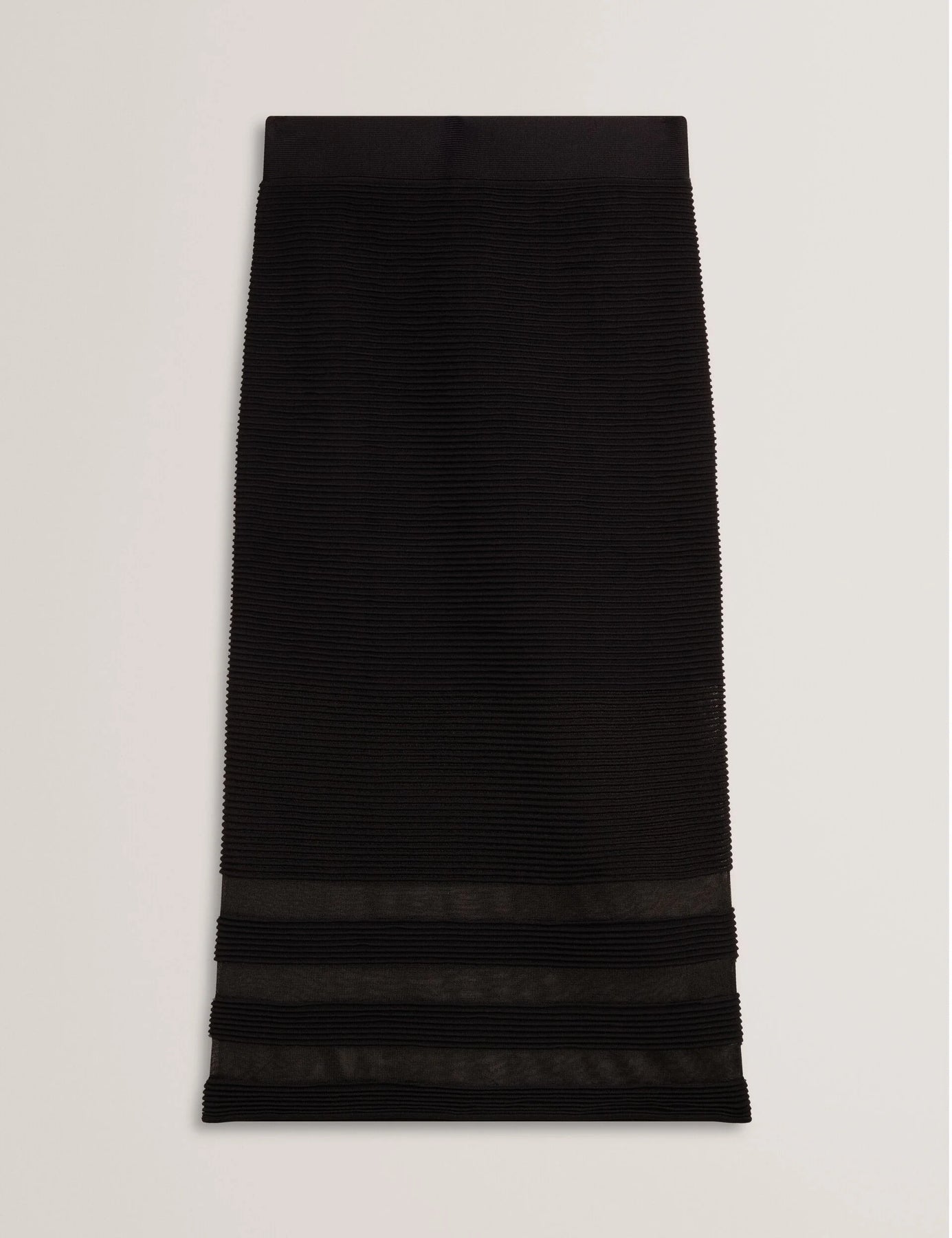 Flattering, comfortable, and sleek - it's the CAIRIE knit pencil skirt. Stitched with a rib texture and complete with sheer panelling at the hem, this midi boasts irresistible texture that will elevate even the most basic of pieces.