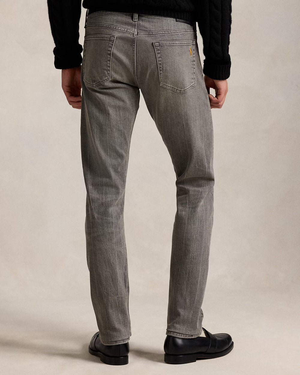 The slim-leg Sullivan features a low rise and a trim fit through the seat, the thigh and the knee. Embroidered with our signature Pony, this lightweight pair is crafted with black stretch denim and washed down to achieve a faded grey shade.
