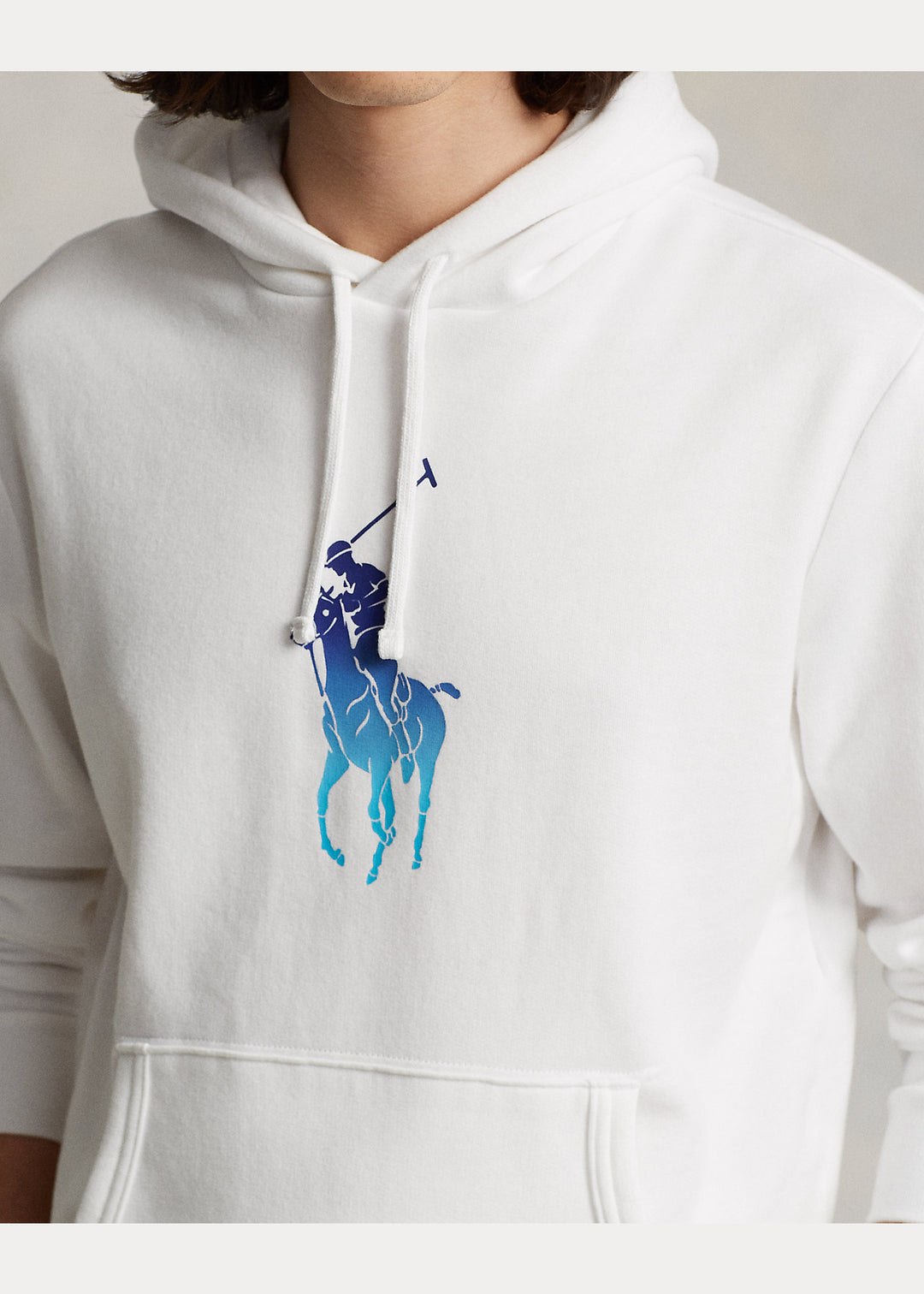 Made from a soft blend that includes Better Cotton™, this lightweight hoodie features our iconic Big Pony rubber-printed on the front to achieve an ombré effect. Ralph Lauren partners with Better Cotton to improve global cotton farming. Better Cotton trains farmers to use water efficiently, care for the health of soil and natural habitats, reduce use of the most harmful chemicals and implement the principles of decent work.