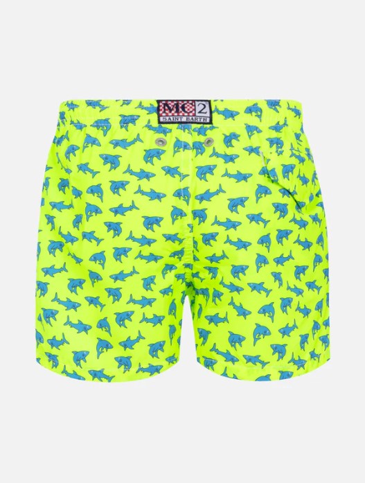 MC2 Saint Barth Lightweight Fabric Swim Shorts Lighting with Shark Print | Yellow