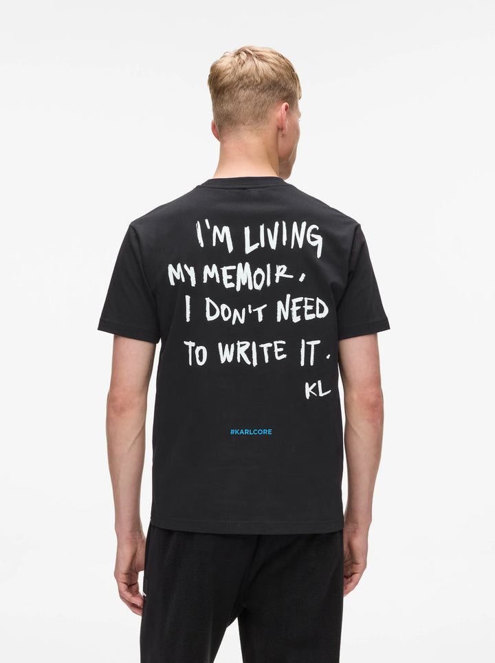 Karl Lagerfeld’s everlasting words run across the back of this organic cotton T-shirt, blending classic comfort with a bold statement.