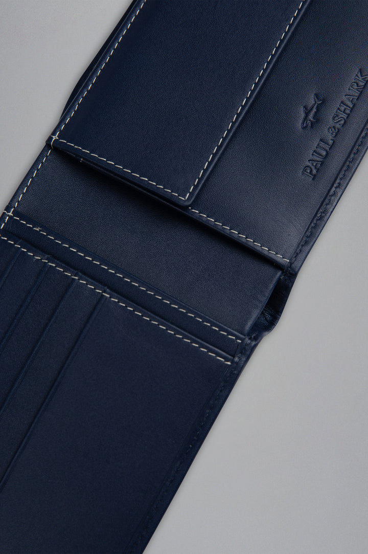 Paul & Shark Monogram Leather Coin Wallet | Navy