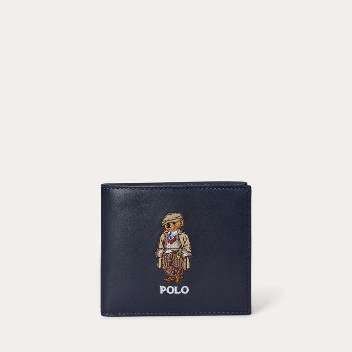 The iconic Polo Bear is dressed for the season on this waxed leather wallet, which features multiple pockets, including a snapped compartment for coins.