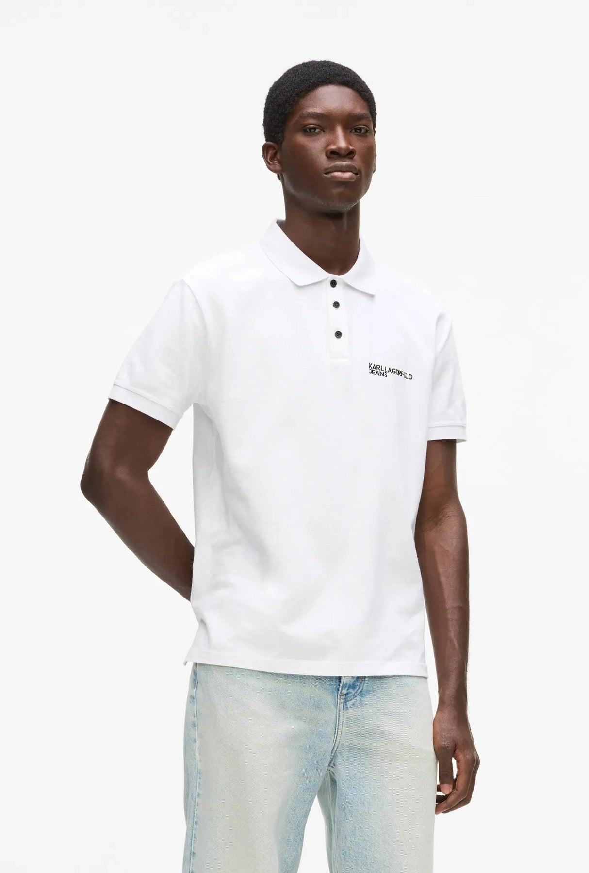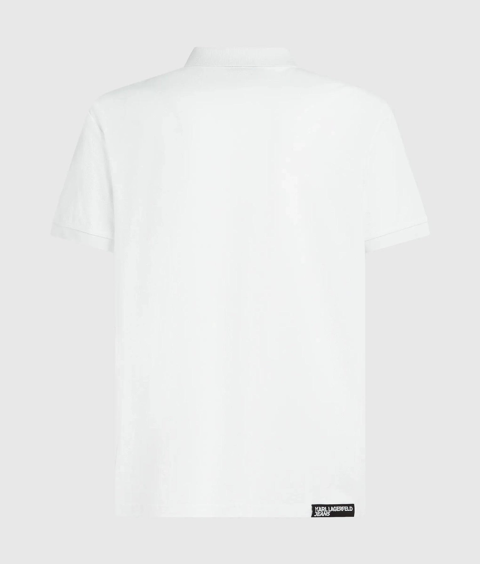 The cornerstone of a summer wardrobe, this organic cotton polo shirt offers effortless style and comfort. Featuring a traditional pointed collar and buttoned placket, anchored by a contrasting KARL LAGERFELD JEANS logo at the chest.