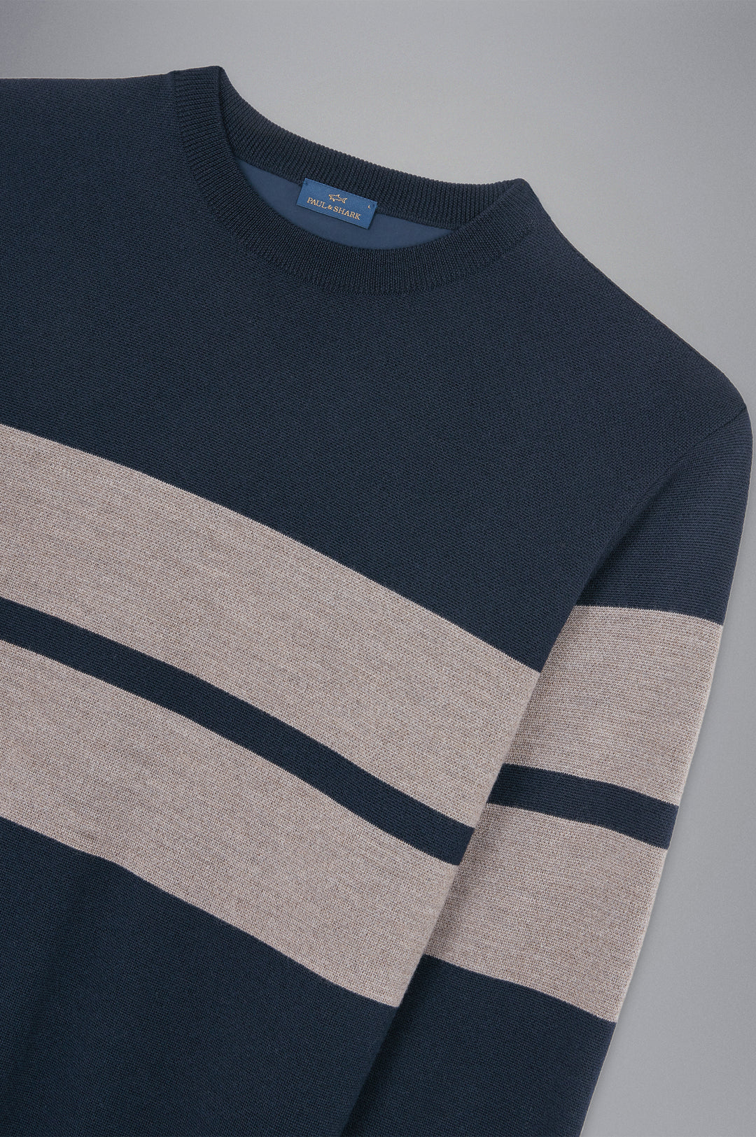 Paul & Shark Wool Crewneck Pullover with Save the Sea Fabric