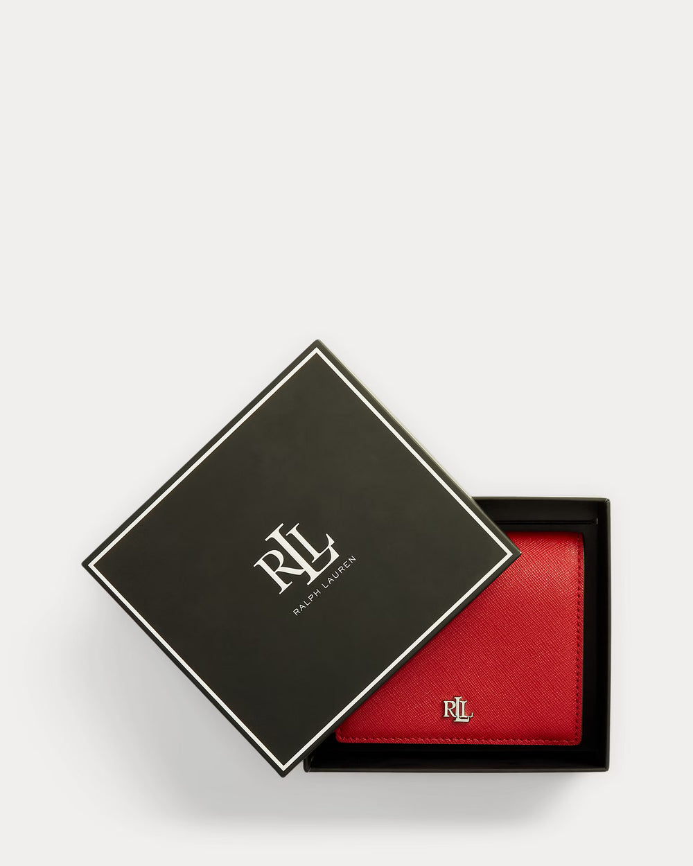 Lauren Ralph Lauren Crosshatch Leather Compact Wallet | Festive Red