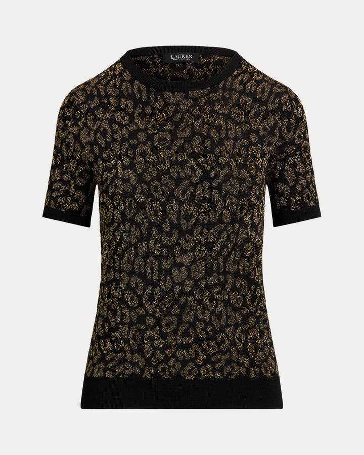 An eye-catching addition to your jumper collection, this short-sleeve crewneck style displays a metallic ocelot jacquard motif.