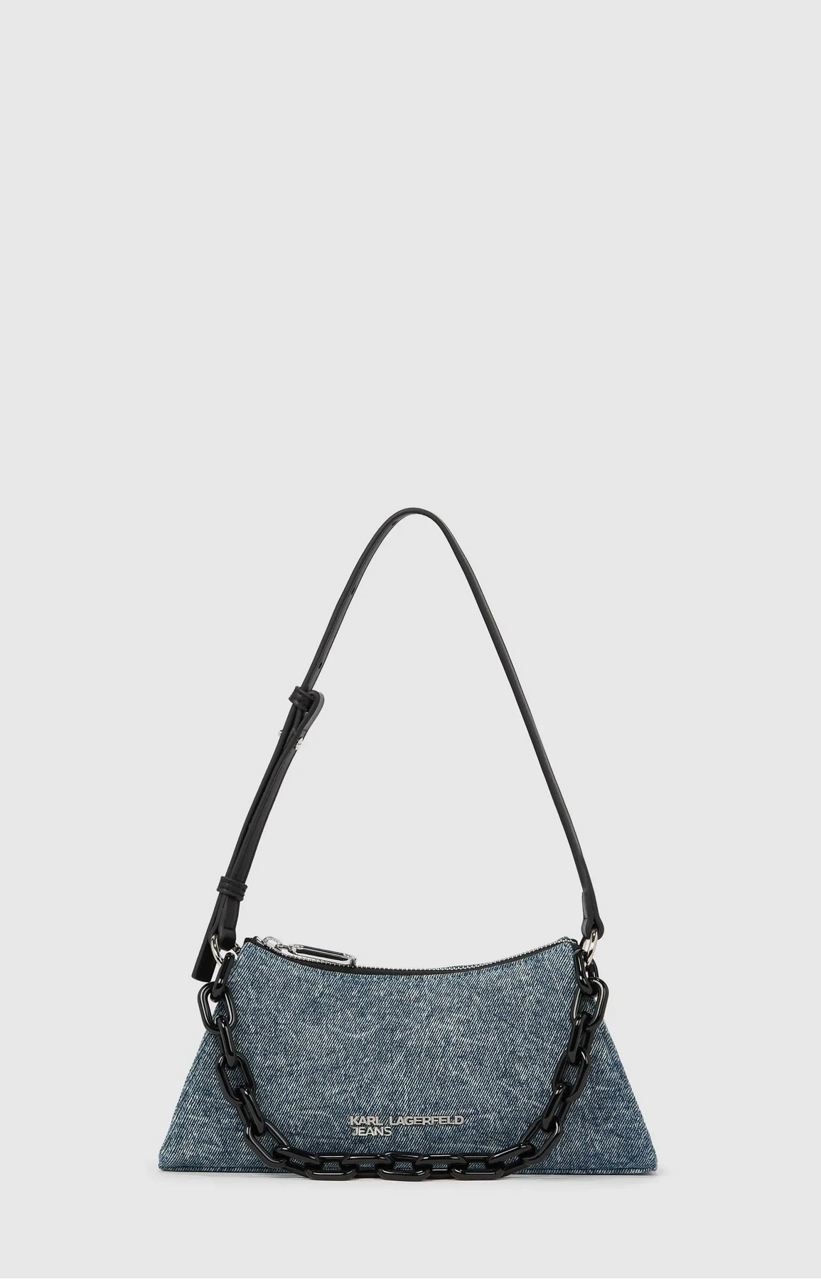 Karl Lagerfeld Denim Chain Small Shoulder Bag | Washed Denim