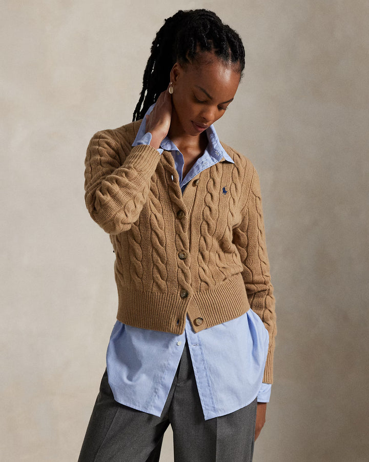 Ralph Lauren Cable-Knit Wool-Cashmere Cardigan | Camel