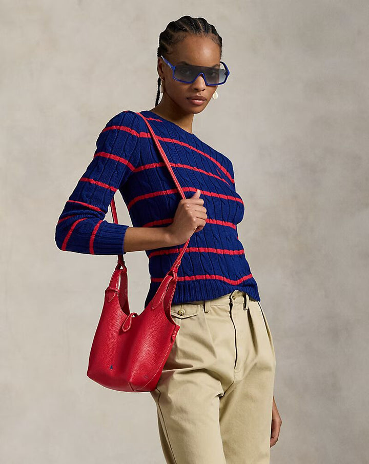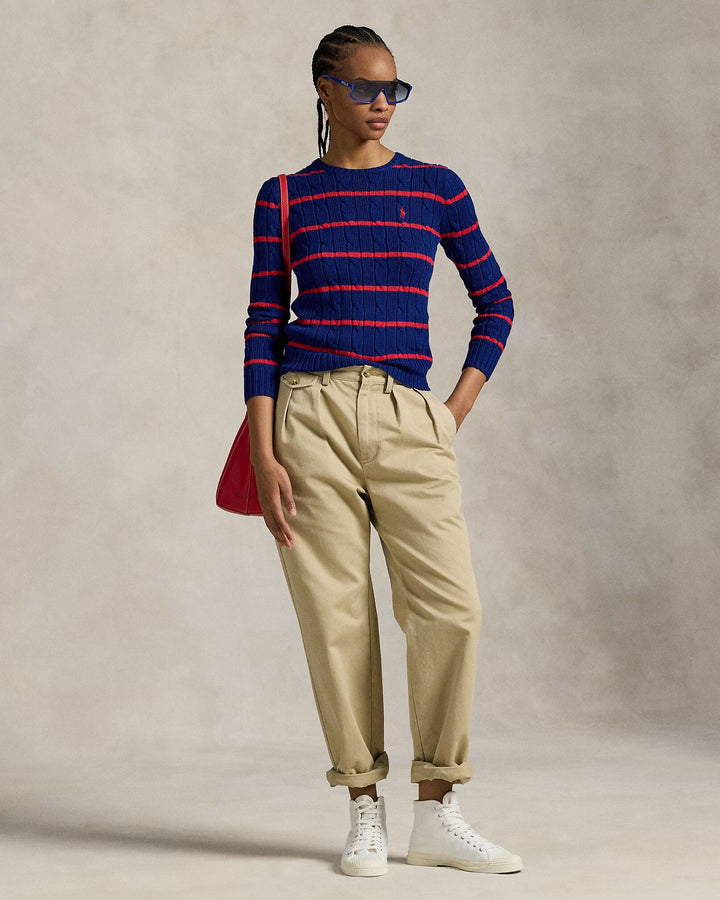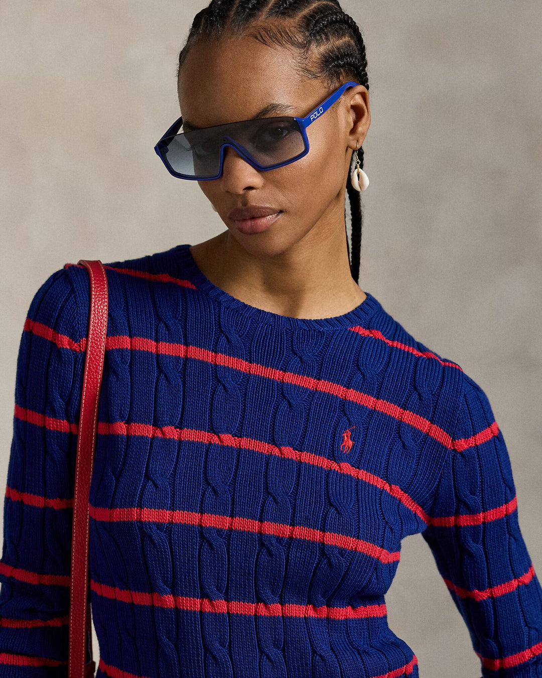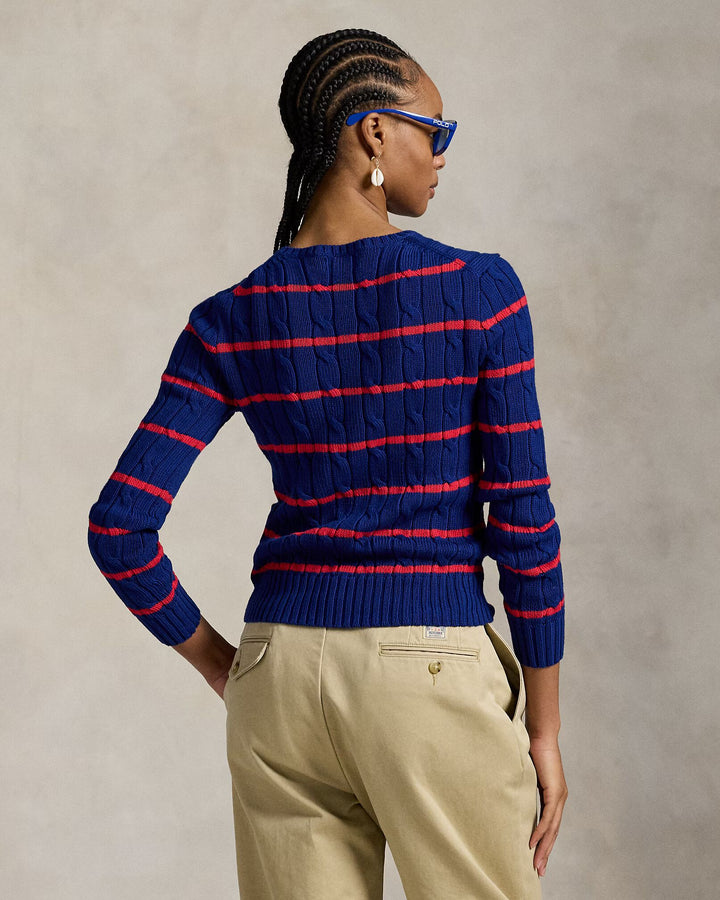 A Polo essential, this striped crewneck jumper is made with soft cotton and showcases our signature cable-knit construction.