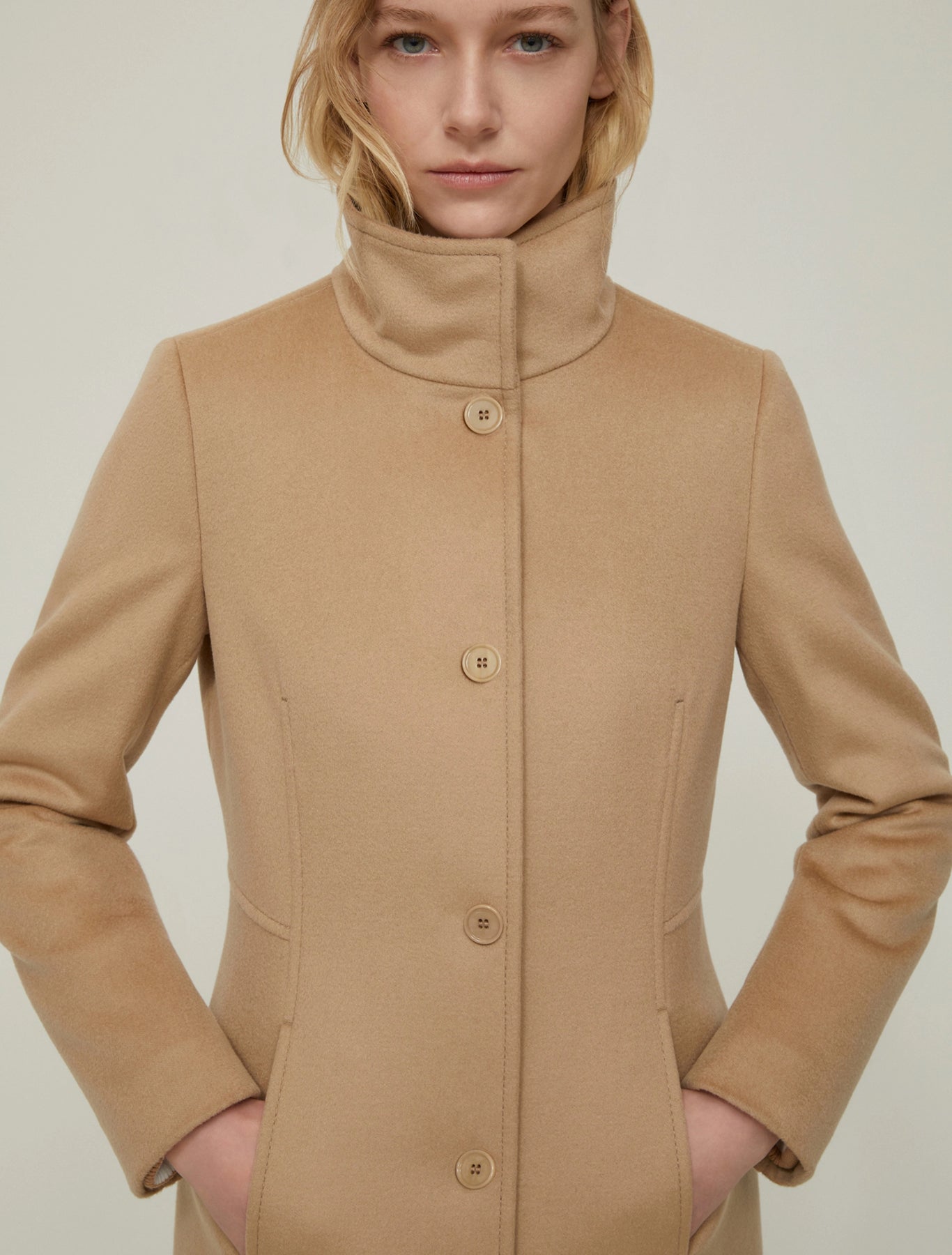 This wool broadcloth coat, which features a slim fit defined by precise tailored darts, is an absolute must-have for city chic looks.