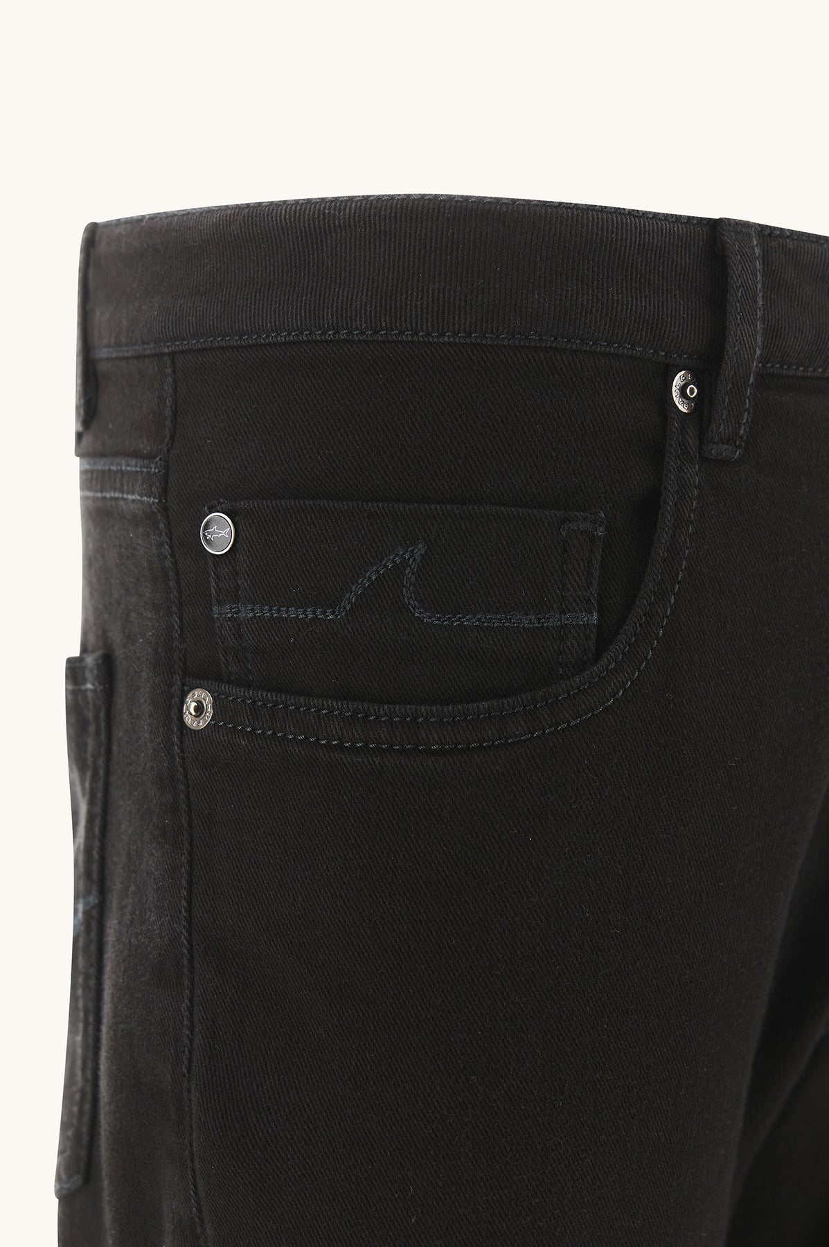 Shark Fin embroidery on the right pocket and back pockets