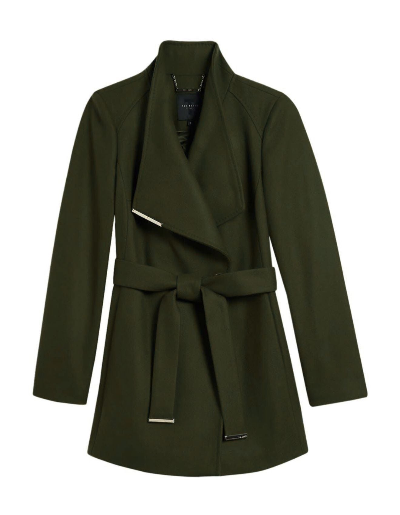 Ted Baker Rosess Short Belted Wool Wrap Coat | Olive